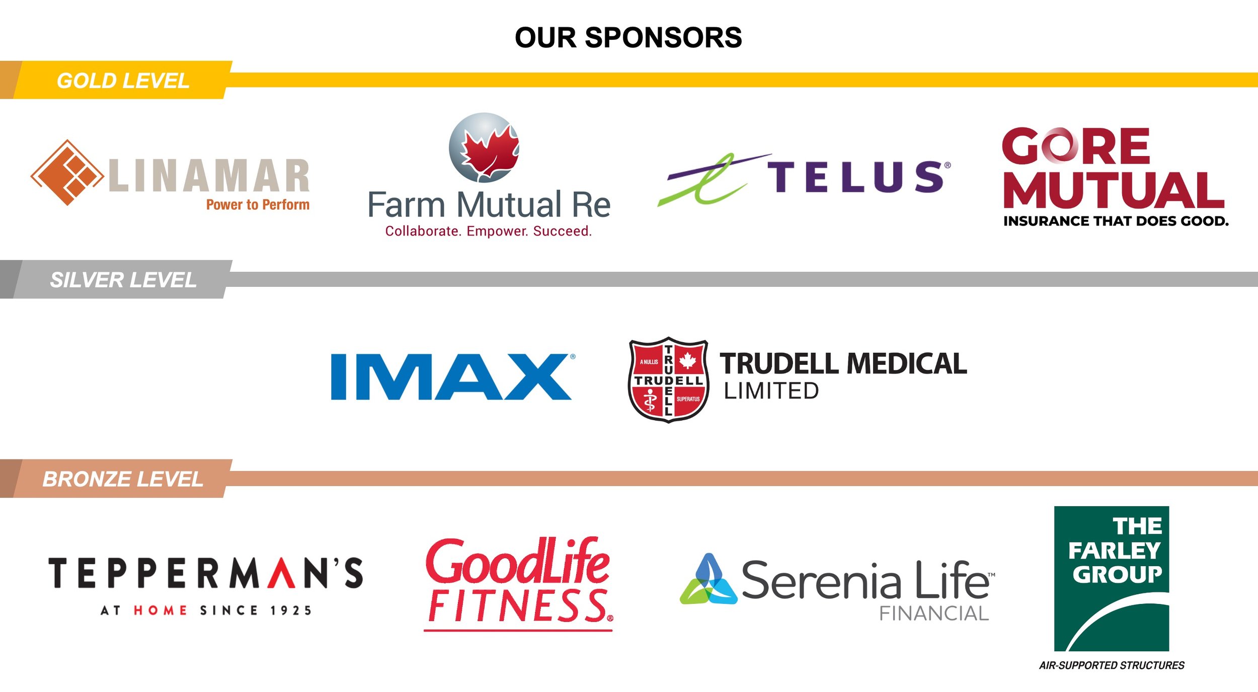 The 2024 Run for Hope was made possible through the generosity of a number of Canadian businesses, including: Linamar, Farm Mutual Reinsurance, Telus, Gore Mutual Insurance, Trudell Medical, IMAX, Serenia Life Financial, Tepperman's, GoodLife Fitness, and The Farley Group.